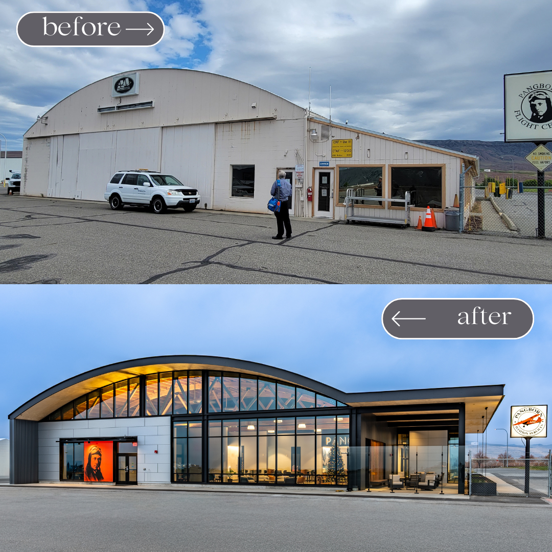 The renovation preserves the character of Pangborn’s original 1960s Quonset hut while introducing modern finishes and functionality. The updated 6,400-square-foot terminal now offers a passenger waiting area, pilot’s lounge, and space for Pangborn’s Fixed Base Operator (FBO). Design choices reflect the region’s natural beauty, incorporating warm materials and clean lines to create a welcoming environment for travelers and aviation professionals alike.