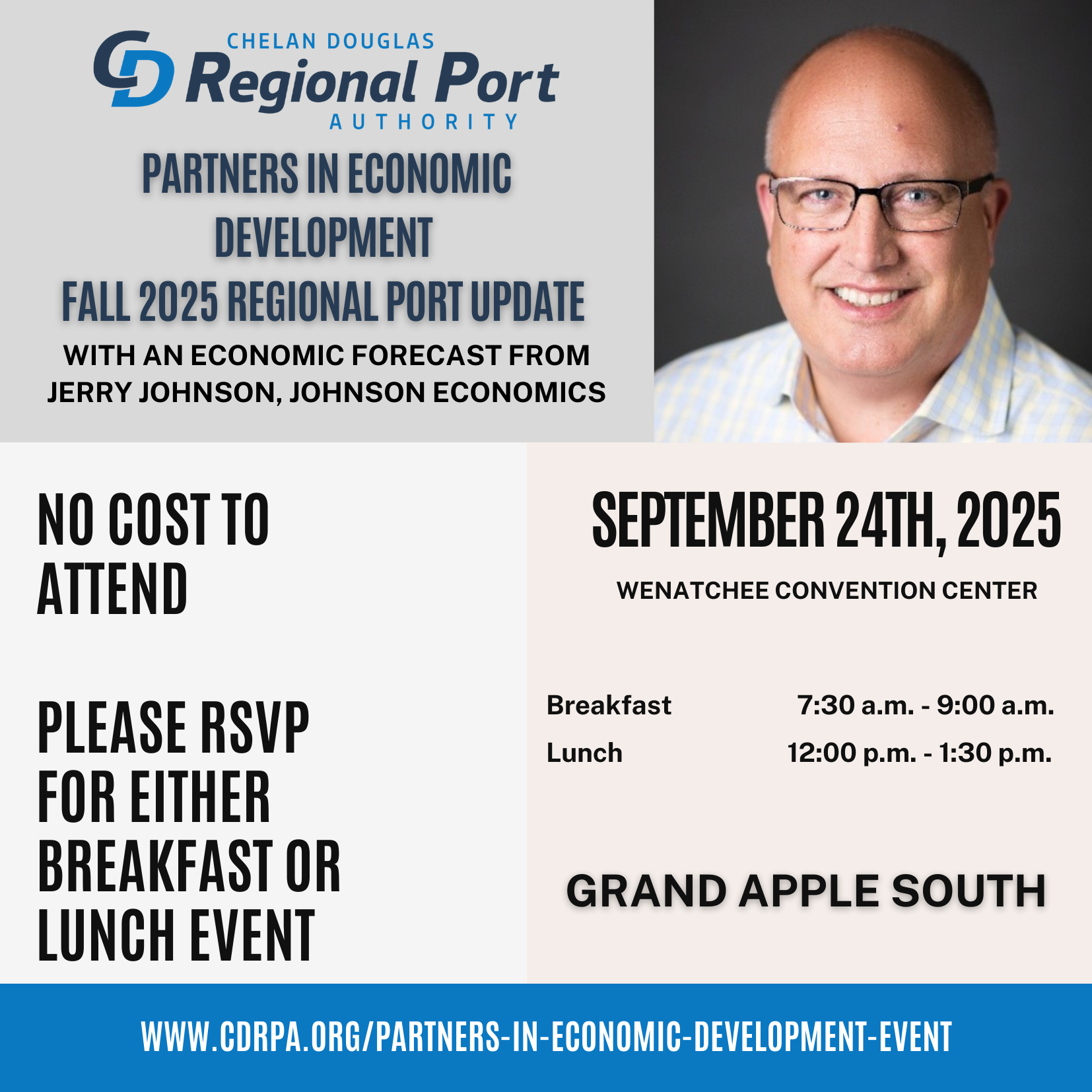 Twice a year, the Chelan Douglas Regional Port Authority invites the community to join us for the Partners in Economic Development event—a vital gathering that brings together local business leaders, community members, and policymakers. This event is an excellent opportunity for everyone to stay informed and engaged with the economic growth of our region.